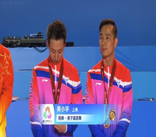 十五运会霹雳舞男子比赛中,上海运动员商小宇获得铜牌。湖北队王瑞苗获得金牌,江苏队亓祥宇摘得银牌。