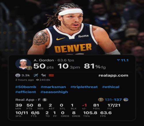42+6+7+3!库里刷爆NBA纪录,戈登空砍50+10记三分球,约基奇三双